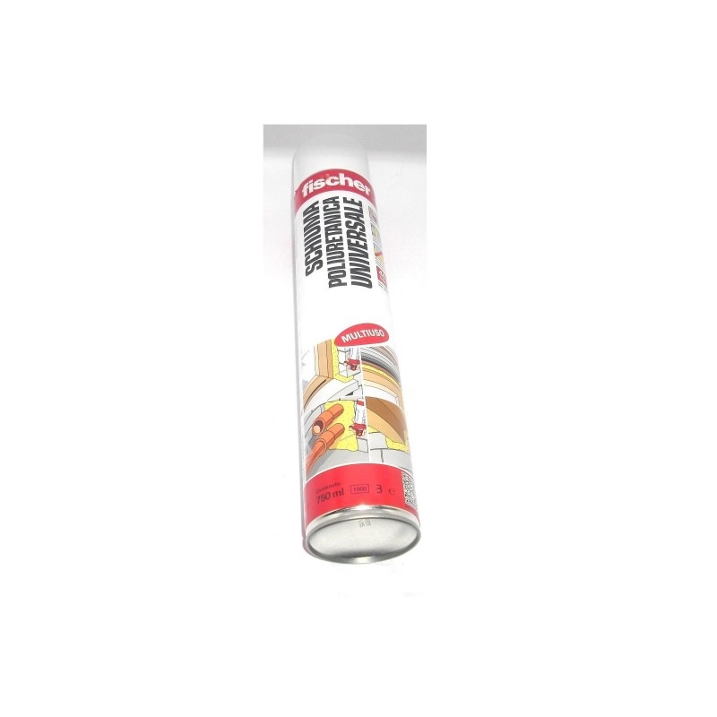 SCHIUMA POLIURETANICA UNIVERSALE FISCHER PU 1K 750Mart.09285 - monocomponente, manuale non necessita della pistola, espande ed indurisce per effetto dell'umidità atmosferica - esente da CFC - dopo l'indurimento, può essere tagliata, verniciata e intonacata - resistente agli agenti chimici (micro organismi e muffe) - ottimo isolamento termo-acustico - impermeabile ed adesiva - tixotropica anche a basse temperature - non ritira - classe di infiammabilità B3