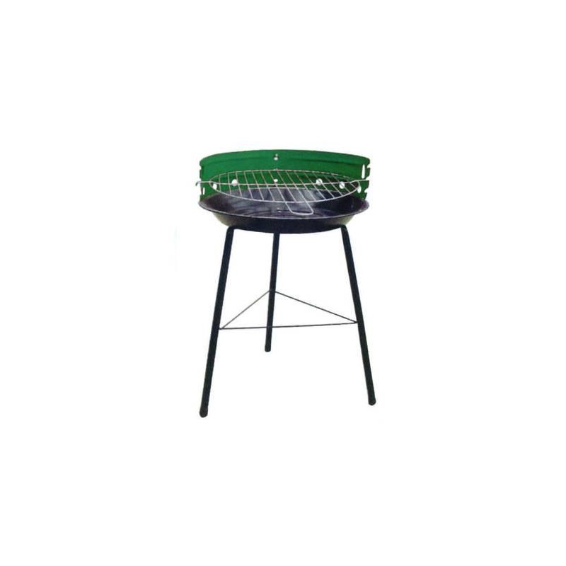 altezza di cottura cm.45,5 - griglia di cottura in acciaio cromato antigraffio con maniglia, regolabile in 3 posizioni - telaio tubolare a 3 gambe con paravento, e ripiano intermedio in metallo verniciato - misure ø cm.40x51h.