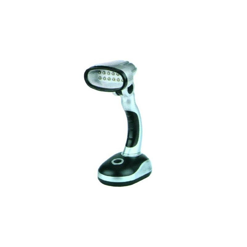 corpo in plastica con braccio inclinabile - colore argento/nero - doppia alimentazione, diretta da computer tramite cavo con attacco USB in dotazione, o con 3 batterie 1,5v stilo "AA" non comprese