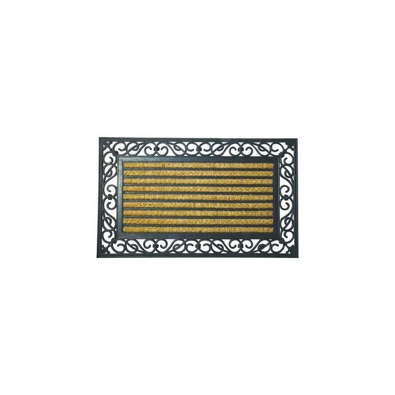 fondo in gomma - bordo esterno in gomma con disegno imitazione ferro - interno in fibra di cocco naturale intarsiato