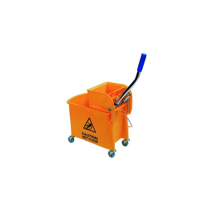 secchio in ABS colore giallo con divisorio centrale, con 4 ruote pivoettanti