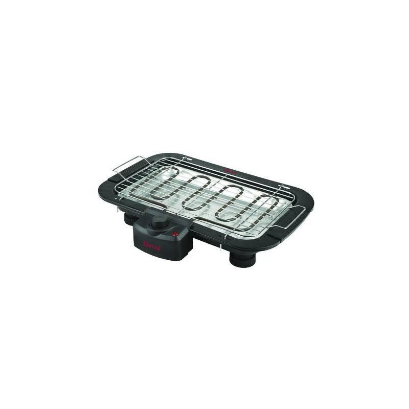 griglia elettrica con termostato regolabile - resistenza in acciaio corazzato - dispositivo di sicurezza nell'impugnatura - dimensioni griglia di cottura cm.38x22 - telaio di appoggio in metallo con maniglie antiscottatura - vassoio smontabile per una facile pulizia - dimensioni cm.48x36x10h. - peso kg.1,9