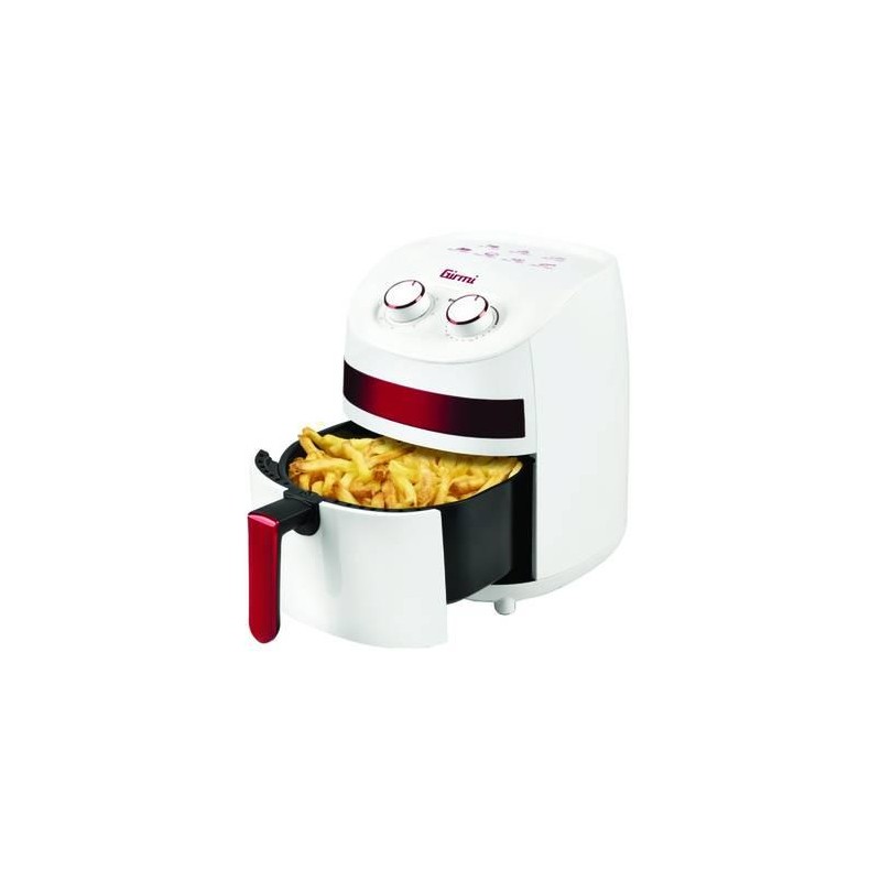 capacità del cestello lt.3,2 (fino a g.800) - contenitore con pratica maniglia - contenitore e vassoio antiaderenti - temperatura regolabile 80°-200°C - timer 60 minuti - piedini antiscivolo - alimentazione: AC 230V ~ 50/60Hz - dimensioni cm.25x29,5x31