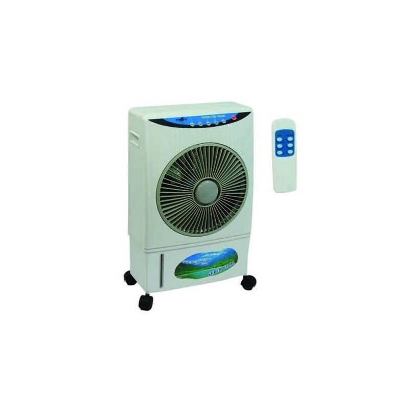 tensione 230v / 50Hz - potenza assorbita 80w - motore a 3 velocità con funzione notturna "SLEEP" - timer elettronico con indicatori led per spegnimento automatico da 30 minuti a 7,30 ore - funzionante a secco come ventilatore o ad acqua come refrigeratore - serbatoio da lt.8 con indicatore di livello - pompa di ricircolo acqua ad immersione - convogliatore a griglia rotante con selettore per cambio di direzione - emana aria a temperatura inferiore rispetto alla temperatura ambiente con un effetto rinfrescante superiore rispetto ai ventilatori tradizionali, crea una sensazione di fresco e purifica l'aria - dotato di filtro ai carboni attivi che elimina odori, batteri e polvere dell'aria - montato su ruote - dimensioni cm.40x24,5x68h.