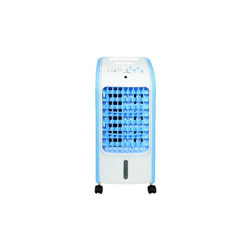- 80W - funzione ventilazione con utilizzo a secco - funzione refrigerazione con utilizzo acqua - 3 velocita' - velocità aria: 7,4/ 8,0/ 8,6mt./sec. - flusso aria 300 mq/h - oscillazione 120° - timer h.7,5 - telecomando - display LED - serbatoio lt.4 - panetto ghiaccio incluso - cuscinetto di raffreddamento a nido d'ape
