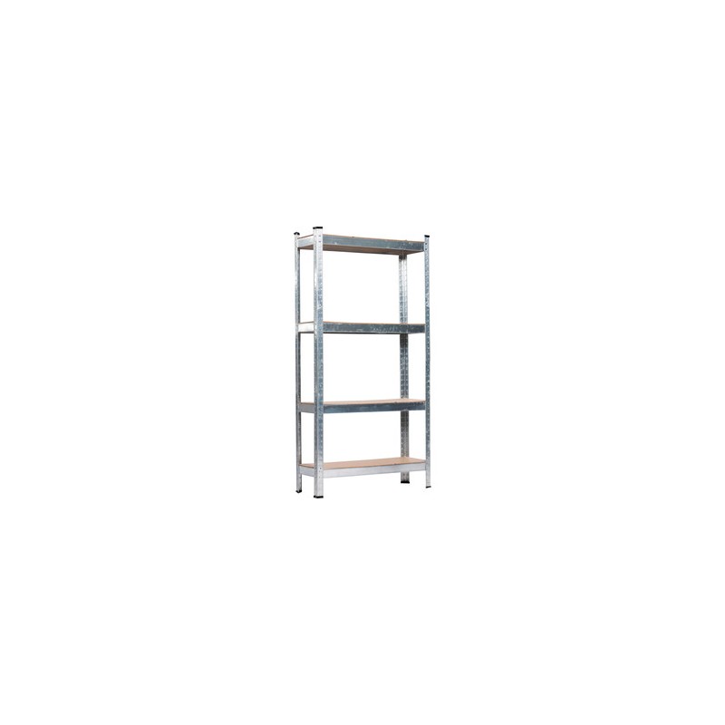 struttura in metallo zincato con incastro a linguetta, senza bulloni. 4 ripiani rinforzati in MDF spessore 4 mm, regolabili. Portata max 60 kg per ripiano (peso uniformemente distribuito). Dimensioni 80 x 40 x h 160 cm.
