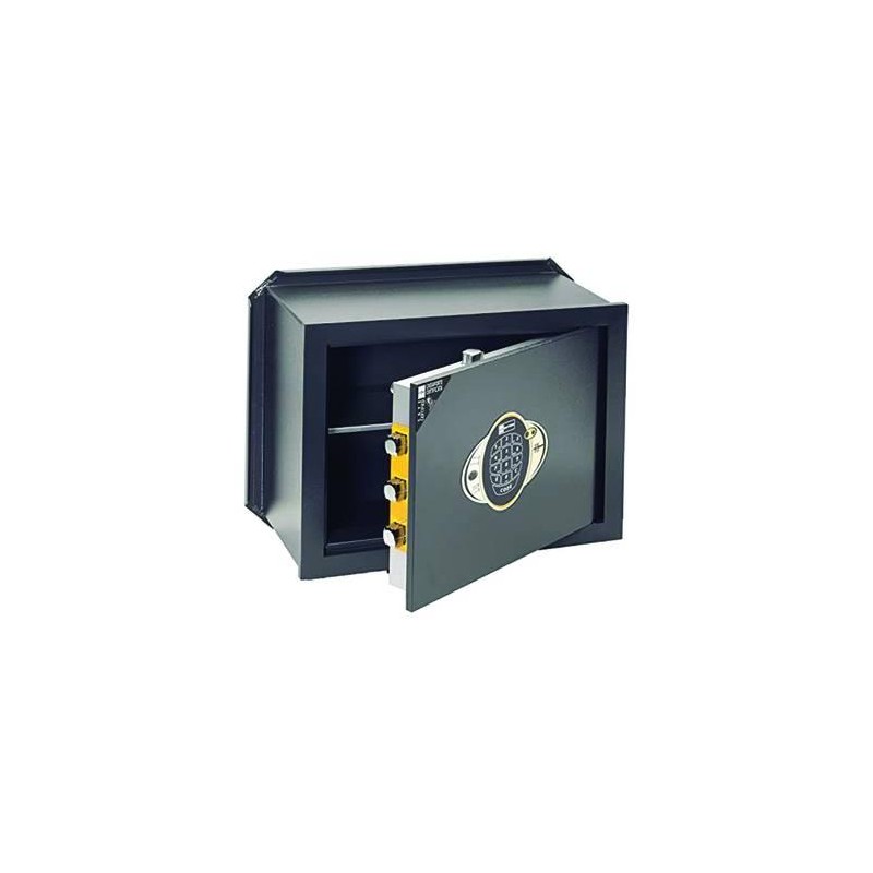 frontale e cornice in acciaio da mm.12 di spessore - chiusure verticali piane - movimento dei chiavistelli sagomati è motorizzato - protezione al manganese estesa ai chiavistelli frontali - una luce interna a led si accende automaticamente a cassaforte aperta - verniciatura esterna colore grigio, dotazione 1 ripiano interno