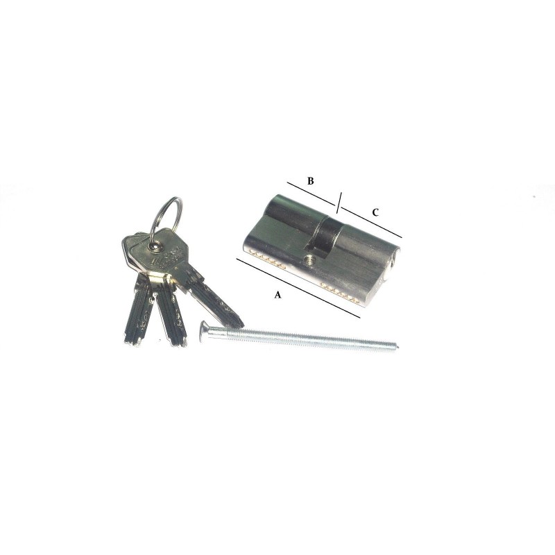 CILINDRO SAGOMATO NICHELATO UNIVERSALE ANTITRAPANO CISA ASIX VARIE MISURE 0E300Caratteristiche tecniche:• Corpo in ottone nichelato• Cilindretti in ottone nichelato• Camma DIN sporgente in acciaio sinterizzatoautolubrificante• Perni:in bronzo antiusurain acciaio cementato in prima posizione.• Controperni:in ottone cilindrici a fungoin acciaio carbonitrurato in prima posizione.• Molle in bronzo fosforoso• Chiavi:- piatte reversibili.- collo lungo compatibili con borchia di protezione- in ottone, nichelate- numerazione codice sulla testaVARIE MISURECILINDRO DA 60MM-ALUNGHEZZA TOTALE 60MM. DECENTRATURA B-30 / C-30 MM.CILINDRO DA 70MM-ALUNGHEZZA TOTALE 70MM. DECENTRATURA B-30 / C-40 MM.CILINDRO DA 70MM-ALUNGHEZZA TOTALE 70MM. DECENTRATURA B-35 / C-35 MM.CILINDRO DA 80MM-ALUNGHEZZA TOTALE 80MM. DECENTRATURA B-40 / C-40 MM.