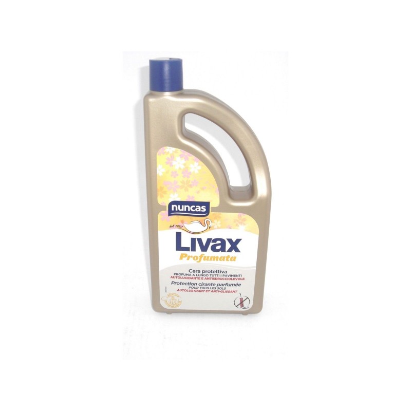 Livax ProfumataCera profumata, multisuperficie, autolucidante e facile da utilizzareChi è alle prime esperienze in fatto di cura dei pavimenti apprezzerà un prodotto rapido e facile da usare, che dà alla casa un aspetto curato senza pretendere troppo in termini di energie investite. Per tutti i tipi di pavimenti, dal parquet al cotto, dal marmo alla gomma….un aiuto prezioso e veloce per pavimenti brillanti e protetti.Livax Profumata è una cera autolucidante perfetta per il trattamento di ogni tipo di pavimento. La sua formula innovativa è l’ideale per chi stende la cera senza averne tanta esperienza: è facile da utilizzare e protegge a lungo le superfici trattate prevenendo l’infiltrazione dello sporco e l’accumularsi delle macchie. Non ha bisogno di essere lucidata fa tutto da sé! . Il suo film protettivo ti aiuta a mantenere lucido il pavimento e a rimuovere la polvere più velocemente.Prima di applicare Livax Profumata per la prima volta è utile eliminare eventuali residui precedenti di cera con un prodotto specifico, come Livax D20 decerante.Procurati una spugna da bagno vecchia, ben bagnata con acqua e strizzata energicamente. Versa la cera pura in una bacinella capiente e poi immergi la spugna facendola assorbire uniformemente. Strizza leggermente, poi usa la spugna direttamente sui pavimenti, passando sulla superficie una sola volta e procedendo in un’unica direzione. Aggiungi altra cera nella bacinella se necessario.Lascia asciugare la cera molto bene prima di camminare sulla superficie.