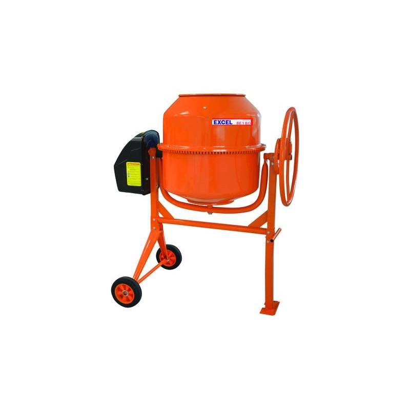 motore elettrico 230V HP 1,0 - kW 0,80 - capacita' bicchiere 180L - IP 44 - dimensioni betoniera montata cm 120x80 h 137 - corpo in acciaio - corona in ghisa