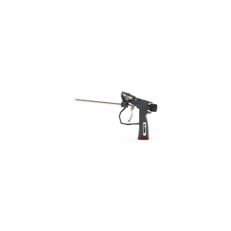 leggera e resistente, impignatura in tecnopolimero con inserto in alluminio pressofuso e leva in acciaio nichelato.Tenuta ermetica tra spillo e ugello, Guarnizioni in PTFE e premistoppa regolabile. Valvola unidirezionale in ottone e acciaio. Regolazione con pomello ergonomico in tecnopolimero a passo rapido. Con adattatore universale. Lunghezza tubo erogazione 10x300 mm