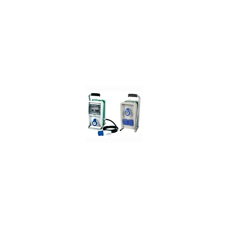 art. 74304 - categoria AS - con cavo 2 m H07RN-F certificato per cantiere - protezione prese dif./Magnetotermico - spina 2P+T 16A - N.2 prese CEE 2P+T 16A 230V + n.2 prese civili 2P+T 16A 230V con sportello IP44 disposte su due lati - bordo protettivo di alto spessore in modo da proteggere le prese da urti laterali - cavalletto in acciaio zincato di serie - grado protezione IP44