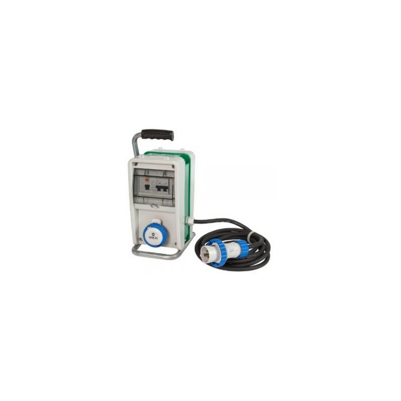 art. 74305 - categoria ASC - con cavo 4 m H07RN-F certificato per cantiere - protezione prese dif./Magnetotermico - spina IP67 2P+T 16A - N.3 prese CEE 2P+T 16A 230V IP 67 disposte su due lati - bordo protettivo di alto spessore in modo da proteggere le prese da urti laterali - cavalletto in acciaio zincato di serie - grado protezione IP65