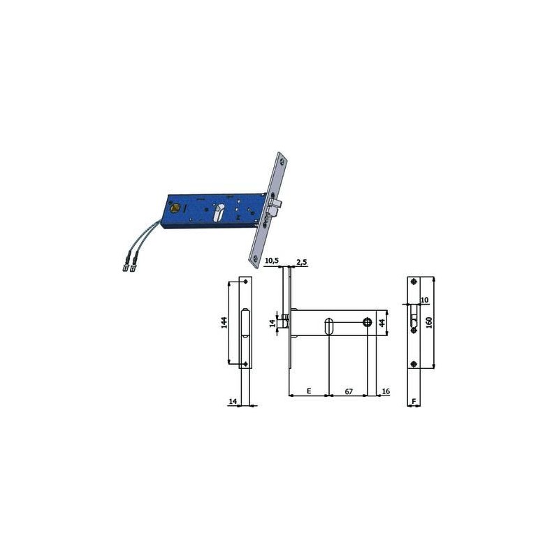 scatola e coperchio in acciaio zincato e plastificato - frontale in acciaio inox mm.16 - catenaccio in acciaio nichelato - pistone di ricarica in acciaio nichelato - scrocco in lega speciale nichelata - scrocco comandato dalla chiave, dalla maniglia, dal comando elettrico a distanza o dal pulsante meccanico cod.058 - il funzionamento è garantito anche in mancanza di corrente - con il pulsante meccanico cod.059 è consentito il bloccaggio dell'elettroserratura in posizione di "aperto" - reversibile - in dotazione: vite cilindro, istruzioni di montaggio - cilindro non compreso
