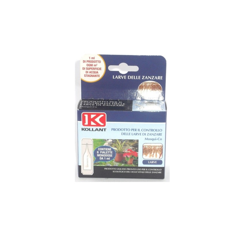MOSQUI-CO è un prodotto unico, di nuova generazione per il controllo delle larve di zanzare, “eco-friendly” e rispettoso dell’ambiente. MOSQUI-CO è un prodotto liquido a base di silicone facilmente applicabile sulla superficie delle acque stagnanti e ferme; forma un film molto sottile sulla superficie acquatica che ricopre in tutta la sua estensione. Agisce per azione fisico-meccanica, con una persistenza ed un’efficacia di almeno 4 settimane. In conformità alle vigenti normative MOSQUI-CO non risulta pericoloso per la salute e non ha effetti negativi sull’ambiente acquatico. Il prodotto viene garantito dal produttore quale idoneo esclusivamente per il controllo delle zanzare. Non impiegare per altri utilizzi. La presenza di PDMS non modifica i valori dell’acqua quali temperatura, pH, ossigeno disciolto, durezza, di ammoniaca e composti azotati. In particolare i valori di ossigeno disciolto rientrano entro i parametri accettabili per la sopravvivenza della flora e della fauna acquatica. Test condotti da organismi certificatori, hanno stabilito che il PDMS è impiegabile nelle acque potabili. Non crea fenomeni di resistenza. Taglia disponibile: 8 fialette da 1 ml; 25 ml.LARVE DI ZANZARA (Indicato per l’uso in acque ferme e stagnanti: laghi, bacini idrici, risaie, fognature, caditoie, tombini, canali di scolo, serbatoi d’acqua, sottovasi, secchi, fosse settiche, pneumatici, grondaie, ecc.): Applicare 1 ml di prodotto tal quale ogni m2 di superficie di acqua stagnante. In base alla superficie dell’area da trattare è sufficiente versare il quantitativo indicato ed in poco tempo la superficie si ricoprirà in maniera uniforme.Lotta contro:Zanzara e Zanzara TigreRegistrazioneNon costituisce un biocida ai fini dell’articolo 3, paragrafo 1, lettera a), del regolamento (UE) n. 528/2012. [DECISIONE DI ESECUZIONE (UE) 2015/655 DELLA COMMISSIONE del 23 aprile 2015]. Patent pending worldwideComposizionePOLIDIMETILSILOXANO (PDMS silicone): 89,00 g Ingredienti inerti e coadiuvanti: 11,00 g