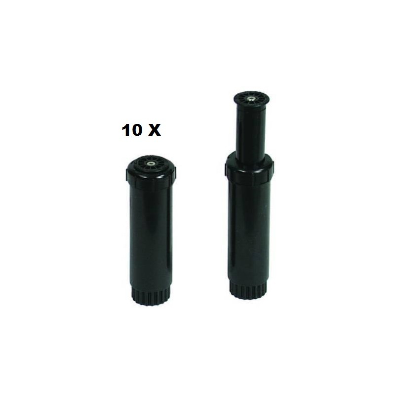 sollevamento cm.5 - attacco con filetto F 1/2" - ugello integrato ad arco regolabile da 1° a 360°- pressione di esercizio da 1,4 a 2,8 bar - portata da 0,05 a 1,20mc/h. - portata da 0,8 a 20,1 lt/min. - ugello unico multifunzione di nuova concezione, funzionamento in presenza di sporcizia ancora migliorato - gittata da mt.3,0 a mt.5,8 - misure ø mm.35x110h. - filtro di grandi dimensioni blocca qualsiasi impurità senza compromettere il flusso