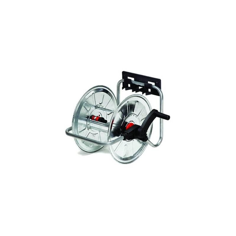 telaio e avvolgitubo in acciaio zincato, capacità mt.50 tubo da 1/2" - raccordo portagomma in plastica e innesto rapido fornito di speciali staffe per l'applicazione a parete.