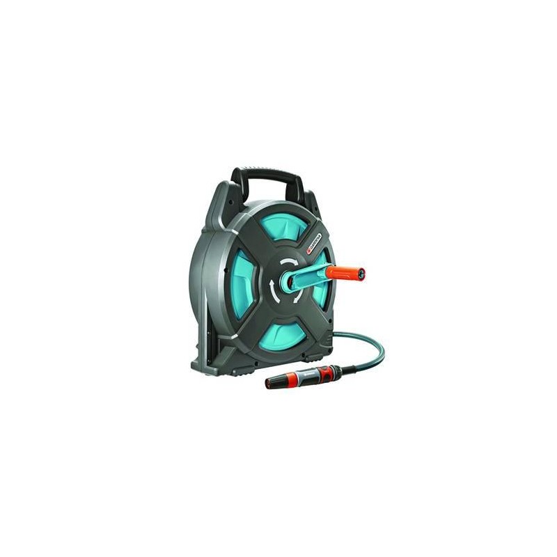 la manovella e il manico possono essere ripiegati - ingombro ridotto - il set comprende un tubo di prima qualità da mt.16,5 (mt.15 + mt.1,5 tubo di collegamento), accessori di raccordo e lancia - può essere utilizzato immediatamente - pressione di scoppio 30 bar - capacità avvolgitubo mm.11 per mt.15