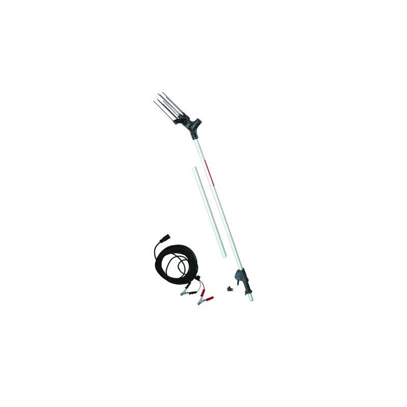 - 270w di potenza max - motore a 12v CC corrente continua munito di interruttore - scuotitore oscillante con 10 pettini in carbonio, con un pettine di ricambio - trasmissione meccanica interna lubrificata - asta ø cm.3,5 in alluminio + prolunga (lunghezza cm.210, con prolunga cm.290) - cavo di alimentazione mt.15 con fusibile di protezione, presa switch in ceramica e pinze 60 Amp per il collegamento alla batteria - utilizzare solo con batteria da 12v (non compresa) - peso Kg.2,6