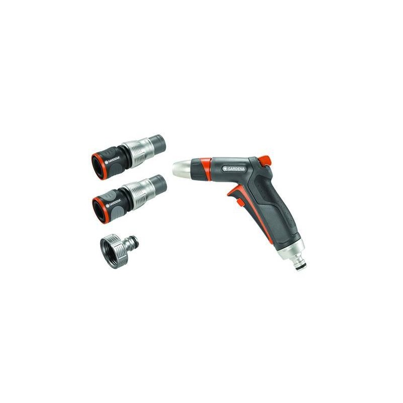contiene una presa rubinetto con riduttore (art.18242 e 5305), un raccordo rapido (art.18255), un raccordo acqua-stop (art.18253) e una lancia a impulsi premium (art.18305)