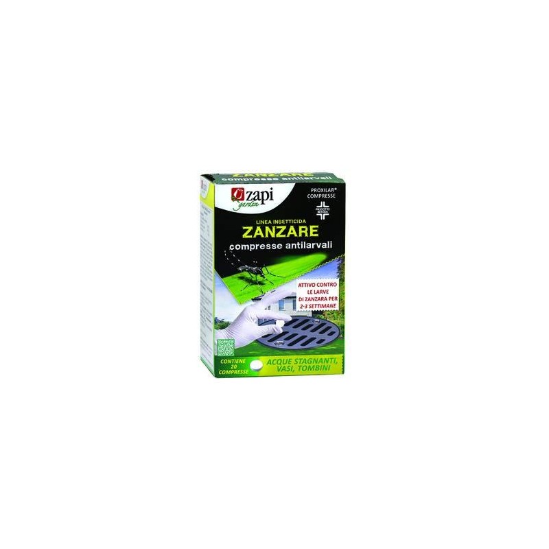larvicida antizanzare in compresse - principio attivo pyriproxyfen - campo d'impiego tombini e caditoie o pozzetti - per la lotta contro larve di ogni specie di zanzara (tigre e comune) - modalità d'uso: 1 compressa per lt.40 di acqua circa, ripetere i trattamenti ogni 2/3 settimane