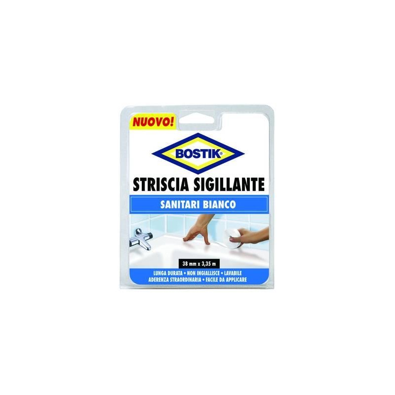 in blister - striscia sigillante autoadesiva - adatta per bagni e cucine, ideale per vasche idromassaggio e tutte le superfici in metacrilato facile da applicare, pratica, evita l’uso di pistole e cartucce, lavabile, resistente alle muffe