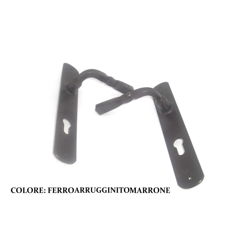 Maniglia con placca FORO YALE colore: ferro arruginito marrone QUADRO 8 FM.026.YM.RPLACCA LUNGHEZZA: 245MM.FORO CILINDRO SAGOMATO DISTANZA TRA FORO CILINDRO E MANIGLIA: 90MM.