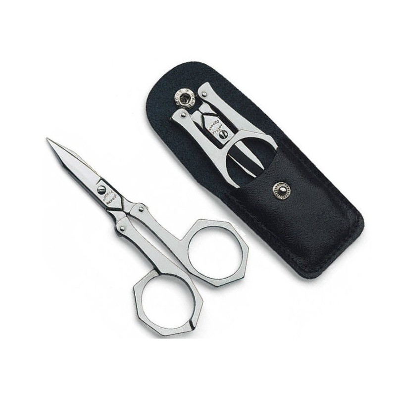 Forbici pieghevoli e tascabili in acciaio speciale ad altissima tempra, con custodia.