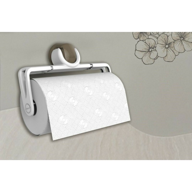 Portarotolo a parete per carta cucina formato grande (maxi) regolabile in larghezza da 22 a 27 cm. Fissaggio a muro con ventosa o tasselli.