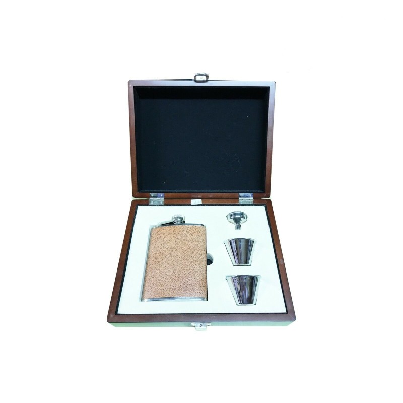Starwings elegantissima valigetta in legno con all'interno fiaschetta in acciaio ricoperta in pelle, 2 bicchieri pi? 1 imbuto, ottimo prezzo.