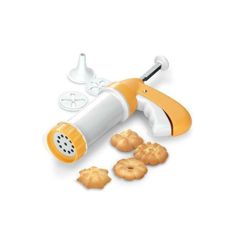 Oppure come forma biscotti, grazie allo stantuffo l'impasto viene spinto attraverso una trafila dalla quale escono biscotti di varie forme.