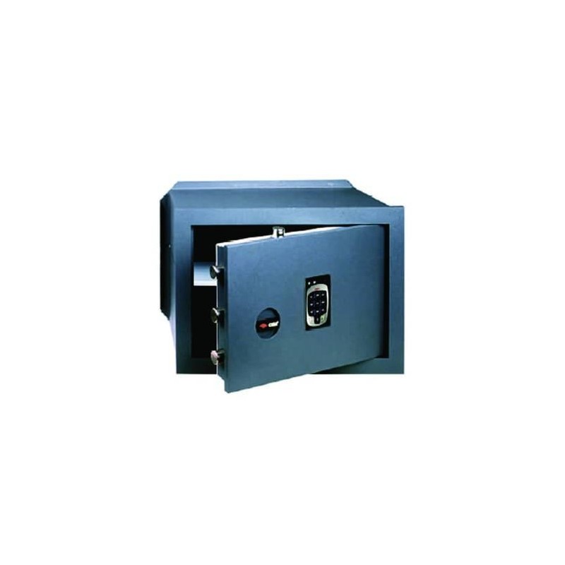 frontale in acciaio da mm.10 di spessore con catenacci in acciaio nichelato ø mm.22, serratura e meccanismi fissati direttamente sullo sportello con piastra di protezione della serratura in acciaio carbonitrurato, versione con combinatore elettronico, a 6 numeri, luce interna, alimentazione con pile stilo alcaline 1,5v, assemblaggio parti di tenuta con saldatura laser, verniciatura al forno ad alta resistenza contro la corrosione, dotazione cavo per alimentazione esterna e 1 ripiano interno