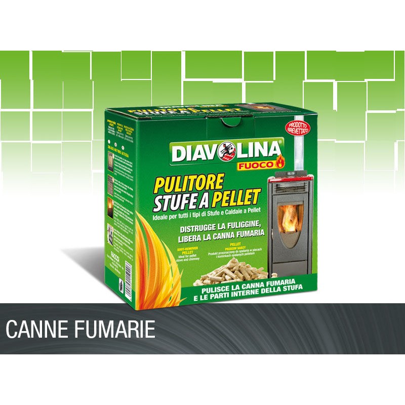 pulitore specifico per l’impianto di scarico di stufe e caldaie a pellet - agendo dall’interno, utilizzato come un normale pellet è l’unico prodotto in grado di pulire anche la camera di combustione delle stufe a pellet, normalmente inaccessibile per la manutenzione ordinaria - la sua combustione sprigiona un intenso fumo bianco, composto da sostanze catalitiche che disgregano le incrostazioni accumulate sulle pareti della camera di combustione e all’interno della canna fumaria - usato regolarmente assicura il tiraggio ottimale della canna fumaria e il buon rendimento dell’impianto, prevenendo le occlusioni