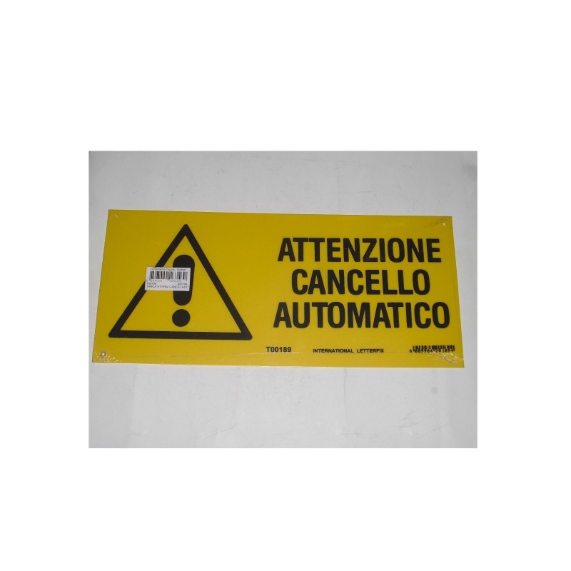 targa in plastica "ATTENZIONE CANCELLO AUTOMATICO" 310X140mm. T00189