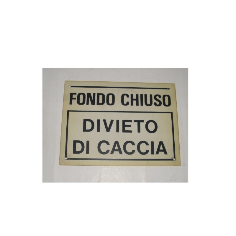 targa in plastica "FONDO CHIUSO DIVIETO DI CACCIA" 230X170MM. A1174