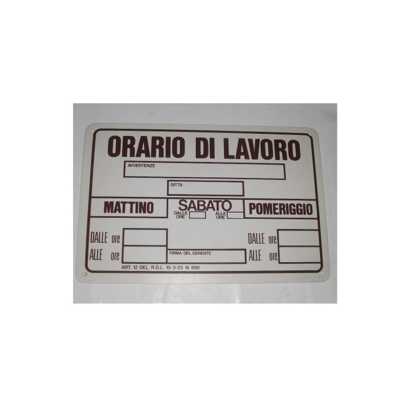 targa in plastica "ORARIO DI LAVORO" 300X200MM. A2285