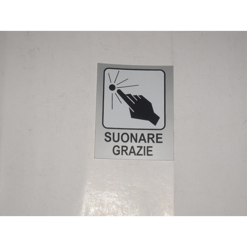 targa in plastica adesiva "SUONARE GRAZIE" 100X80MM. T00864