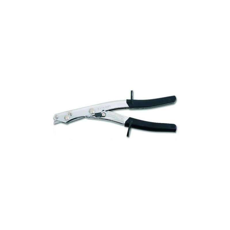 - mm.280, per effettuare con sforzo ridotto tagli passanti su lamiere da mm.1,2 e possibilità di troncarura di filo d'acciaio dolce fino a ø mm.3 - leva di bloccaggio - manici rivestiti in materiale plastico