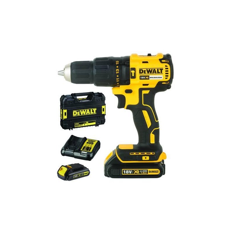 trapano avvitatore 300W di potenza - con percussione Brushless compatto 18V XR 1.5AH - caricabatterie xr litio - mandrino autoserrante da mm.13 con blocco dell'albero per un agevole sostituzione delle punte - 2 velocità variabili con reversibilità - il design del grilletto intelligente consente il controllo totale in ogni applicazione - 15 regolazioni della coppia di serraggio per una maggiore precisione nell'avvitatura in diversi materiali e con viti di diverse dimensioni - capacità mandrino 1.5-mm.13 - velocità a vuoto di 0-500/1.750 g/m - capacità di foratura massima di mm.13 in muratura, mm.13 nel metallo e di mm.30 nel legno - Kg.1,3 - in dotazione: 2 batterie 18V - 1,5 Ah e valigetta