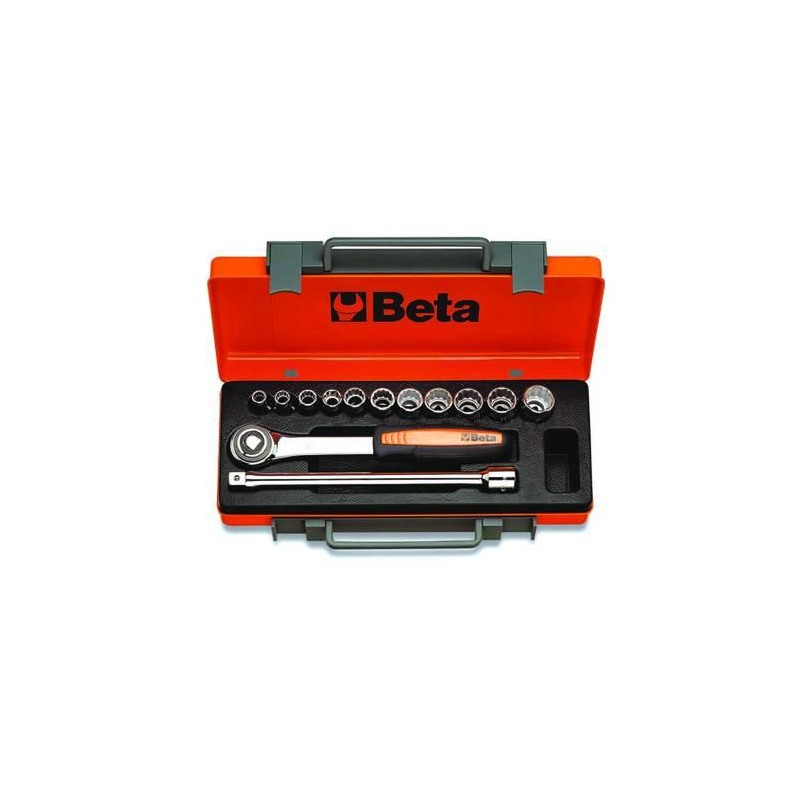 conf. pz.13 composta da: 11 chiavi a bussola da mm.10 a mm.22 (10-12-13-14-15-16-17-18-19-21-22) + 1cricchetto+ 1 prolunga + cassetta
