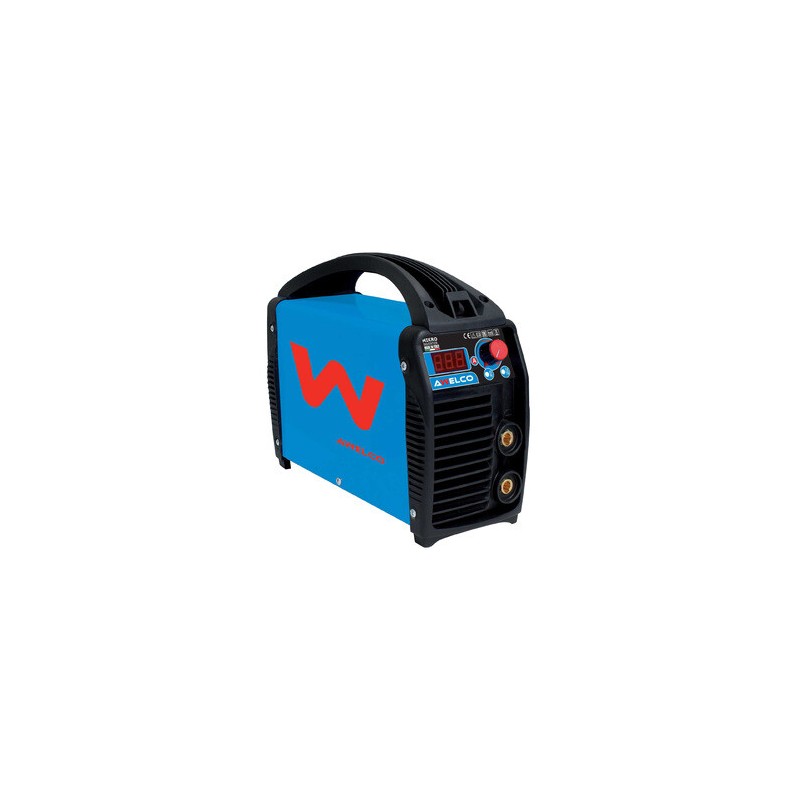 Mod. MIKRO 164 per la saldatura ad arco MMA fornita in valigetta con kit di saldatura. Funziona anche con gruppi elettrogeni. Alimentazione 230V - 50/60 Hz. Potenza assorbita (60) 3,2 kW. Tensione a vuoto 60 V. Campo di regolazione saldatura 30-140 ampere. Elettrodi utilizzabili basici, rutilici, inox e ghisa 1,6 - 4,0 mm. Hot Start funzione che permette una facilit di innesco dellarco.Anti-stick funzione che impedisce allelettrodo di attaccarsi al pezzo. Arc Force funzione che consiste in un aumento della corrente di saldatura, nel caso larco sia troppo corto. Vernice antigraffio. Tecnologia Inverter. Maniglia. Dimensioni imballo 410x200x350 mm. Accessori inclusi Schermo, Marto/Spazzola, Pinza portaelettrodi, Morsetto di massa, Valigetta.