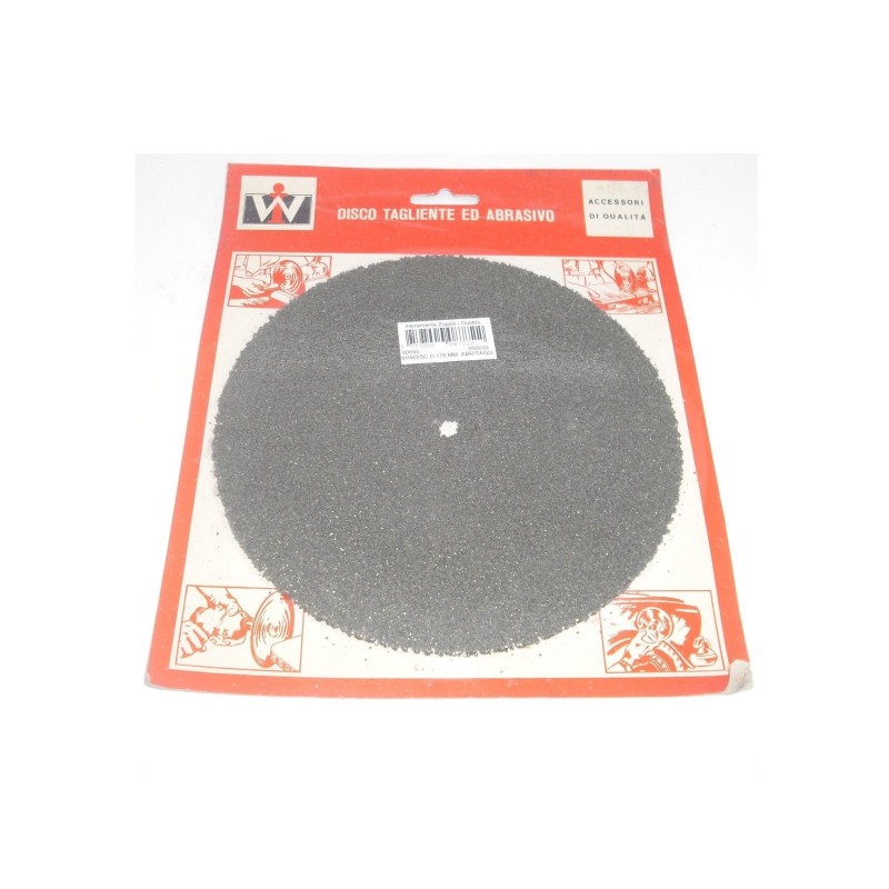 disco UNIDISC ad alto potere tagliente ed abrasivo.FABBRICATO IN ITALIAsmerigliare, scrostare, levigare. Montare il disco su un qualsiasi trapano elettrico usando un platorello di gomma.Entrambe le facciate del disco sono usabili. Quindi, quando una facciata, in seguito ad intenso uso, perde la sua efficacia, capovolgete il disco, UNIDISC NON SI IMPASTA.Segare, affilare. Per segare ed affilare e tavolta anche per smerigliare scrostare e levigare, si ottengono migliori risultati fissando il trapano su un supporto orizzontale. Nel tagliare i materiali duri, come ad esempio il metallo, evitare di tagliaredirettamente angolazioni acute o parti appuntite. In questi casi, il modo migliore è di ruotare il pezzo da tagliare, in maniera da prendere le parti angolose il più possibile lateralmente. Così facendo eviterete un intenso logorio del disco.Usato con cura, l'UNIDISC vi fornirà un servizio eccellente. I risultati migliori li otterete tenendo ferma la mano e usando sempre una pressione minima. Premendo troppo potrete causare un rallentamento dei geiri del trapano e quindi, una minore efficacia dell'UNIDISC. Massimo numero dei giri consigliabile: 6000 rpm.ATTENZIONE: Questo è un utensile di estremo potere tagliente ed abrasivo. Come tale, va usato con massima cura e attenzione di un qualsiasi altro utensile elettrico. SI RACCOMADO L'USO DI OCCHIALI PROTETTIVIDATI TECNICIDIAMETRO: 178MM.SPESSORE: 1,5MM.FORO: 6MM. (ALLARGABILE)VEL.MAX: 6000 GIRI/MIN.