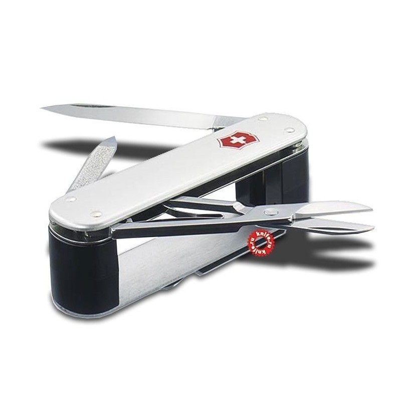 Coltello VICTORINOX S.BEAT MP3 FLIGHT SAFE - 1GB Lettore Mp3 RadioDopo aver abbinato al famoso coltellino da tasca una memoria dati USB, Victorinox presenta il colpo successivo: S.Beat MP3 il piu' piccolo Digital Audio Player (DAP) attualmente in commercio, per file MP3, WMA, WAV e Ogg Vorbis. Inoltre S.Beat e' anche radio, registratore vocale e memoria dati USB e il tutto e' stato integrato nel coltellino originale svizzero. Capacita' della memoria: 1 GB. Dimensioni (L x H x W): 74 x 18.5 x 17 mm. Peso: 45 g. Peso dell'unita' MP3: 32 g. Chip dell'unita' MP3: STMP 3550. Formati compatibili: MP3, WMA (8 - 320 Kbps), WAV, OGG Vorbis. Formato di registrazione: WAV (8 - 48 Kbps. Radio FM: Stereo, 87.5 - 108 MHz. Stazioni Radio FM: Sintonizzazione automatica di 15 stazioni. Display: LCD 3 linee, retro illuminato, garantisce un eccezionale contrasto sia in condizioni di forte luminosita' che al buio. USB: Standard USB 2.0 Hi-Speed. Funzionamento: Semplice e comodo mediante un joystick 4 1 sull'apparecchio o il telecomando fornito in dotazione. Audio Frequenza: 5 mW max (L R at 16 ohm). Batteria ricaricabile: Polimerica al litio 3.7 V. Consumo: in funzione: 25 mA; Standby: 20 mA; Spento: 0.2 mA. Autonomia: 8 ore circa. Sistemi operativi supportati: Windows 2000/XP 98SE/ME, Mac OS X Versione 10.2 o superiore. Temperatura operativa: da 5 C a 35 C. Accessori inclusi: Corpo del multiuso in metallo. Cuffie regolabili e alta qualita' audio sia mentre si fa jogging, ci si reca al lavoro o si e' a casa, sdraiati sul divano grazie anche al sistema anti saltellamento. Telecomando con possibilita' di inserimento di 2 cuffie. Cappuccio protettivo per il lettore MP3. Cinghia di gomma regolabile da braccio. Clip in gomma per fissare l'unita' alla cinghia. Prolunga USB.